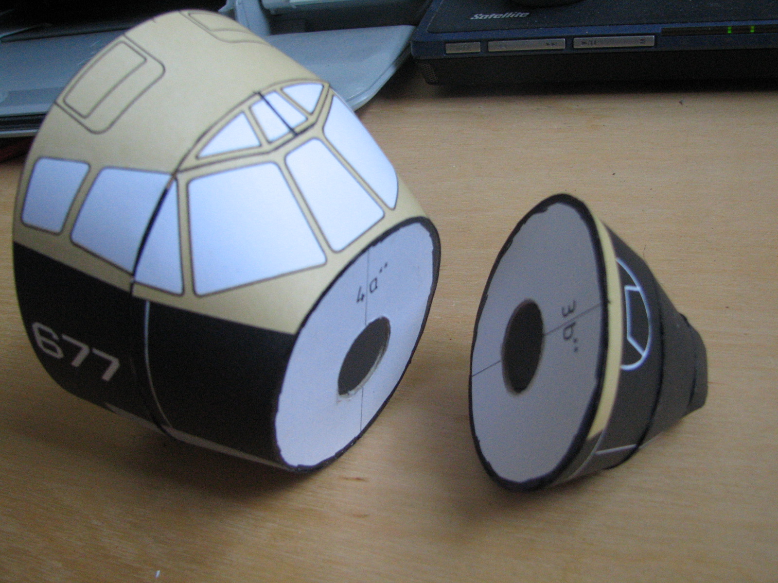 | The first step was to cut out all the bulkhead templates (printed on normal-weight paper), and glue all those parts to a large piece of cardboard (about the same weight as the cardboard on the back of a writing tablet. Then I cut all those pieces out using heavy scissors and a hobby knife, using whichever worked best for each situation. |