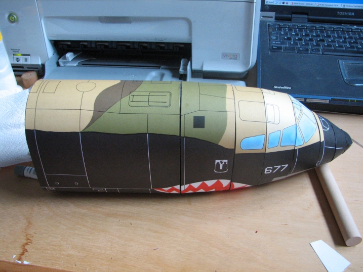 | I finished the sections necessary to get the fuselage completed all the way back to the wing root. I haven't glued all of them together at this point, but this is what it's going to look like. |