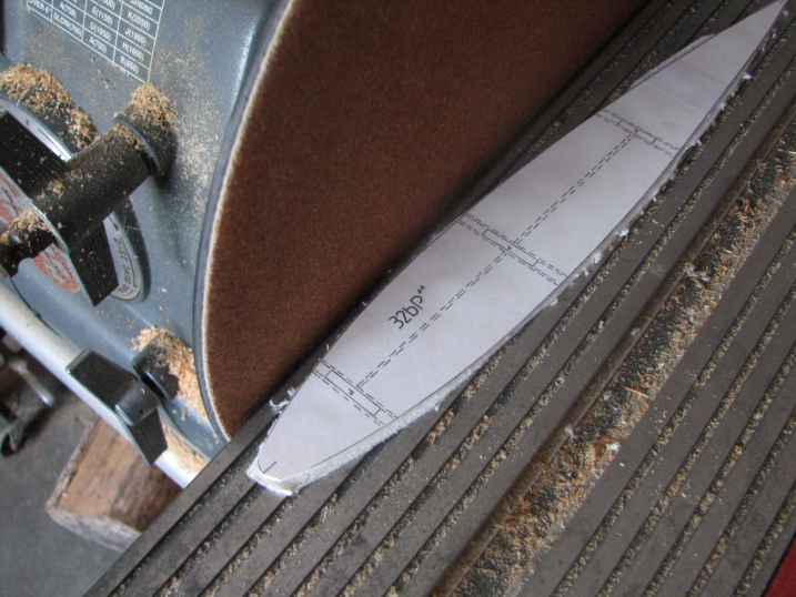 | Here I'm using a 12-inch disc sander to get right down to the black line and make the edge very smooth. |