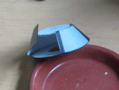| I used a Dremel tool mounted in a drill press attachment. I cut out a piece of masonite, drilled a hole in it, and attached it to the drill press table. This allowed me to lower a sanding drum into the hole so I could use it to finely shape the cardboard bulkheads. |